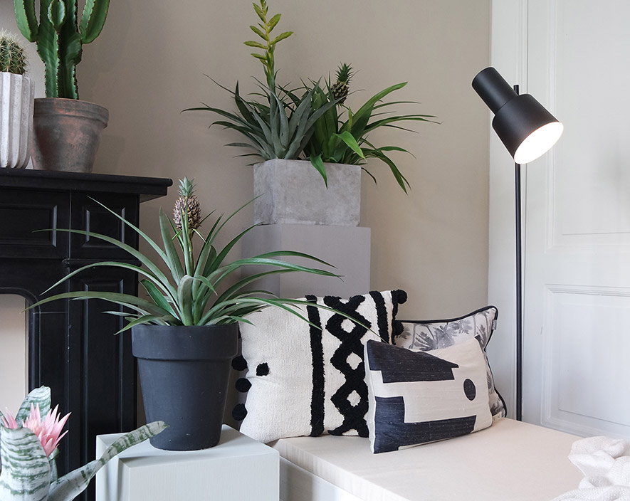 Flamboyant, joyful and strong: the bromeliad is the swinging Latina amongst the houseplants, with temperamental colours and extravagant shapes. With the bromeliad you can bring tropical vibes into your home, but also outside on your balcony or patio! Perfect as a plant for an Indian summer with a generous helping of salsa and instant joy. There are many different types and colours. We’ve highlighted a few types, and show how the bromeliad works within a variety of styles.